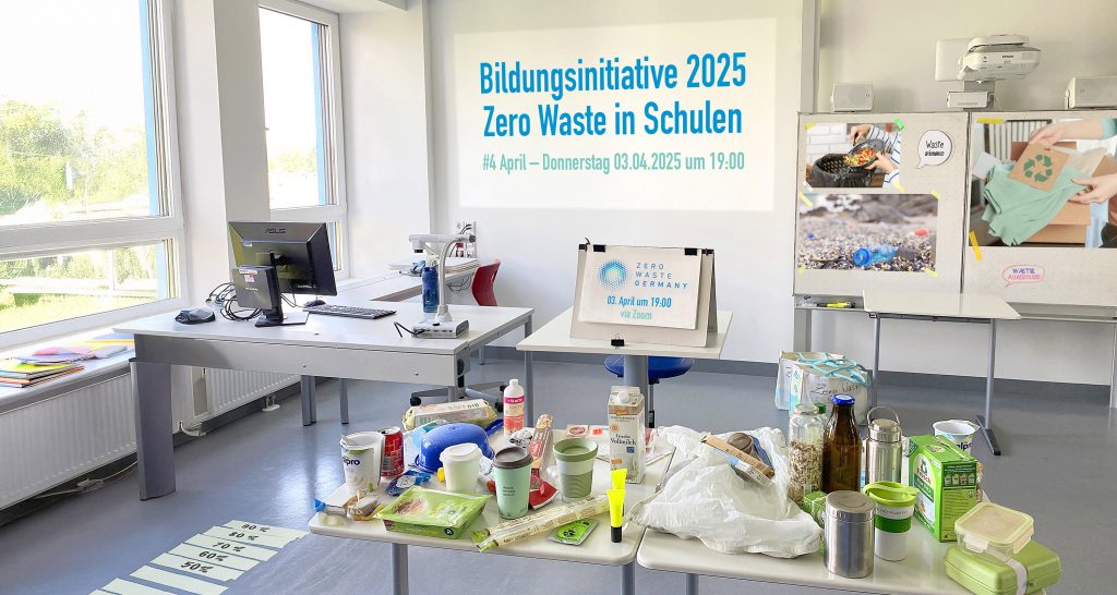 Merkt euch schon mal den nächsten Termin für unser monatliches Onlinetreffen zur „Bildungsinitiative 2025 – Zero Waste in Schulen“ vor: Donnerstag, 03.04., ab 19:00 Uhr.